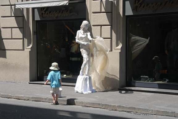 But Florence has its own little treasures. Walking around the city is like going back to the Renaissance and there are examples of street theatre. The young lady in the photo below was fluid and glorious and the appreciative and rather diminutive audience dropped a coin for her.