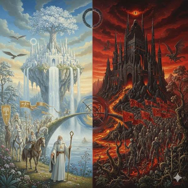 Tolkien’s depiction of the falls of Morgoth and Sauron resonates because it reflects observable patterns in human moral corruption. Great evils rarely begin with someone consciously choosing wickedness; they begin with someone choosing their own will over others’, their own vision over shared truth, their own power over mutual service.